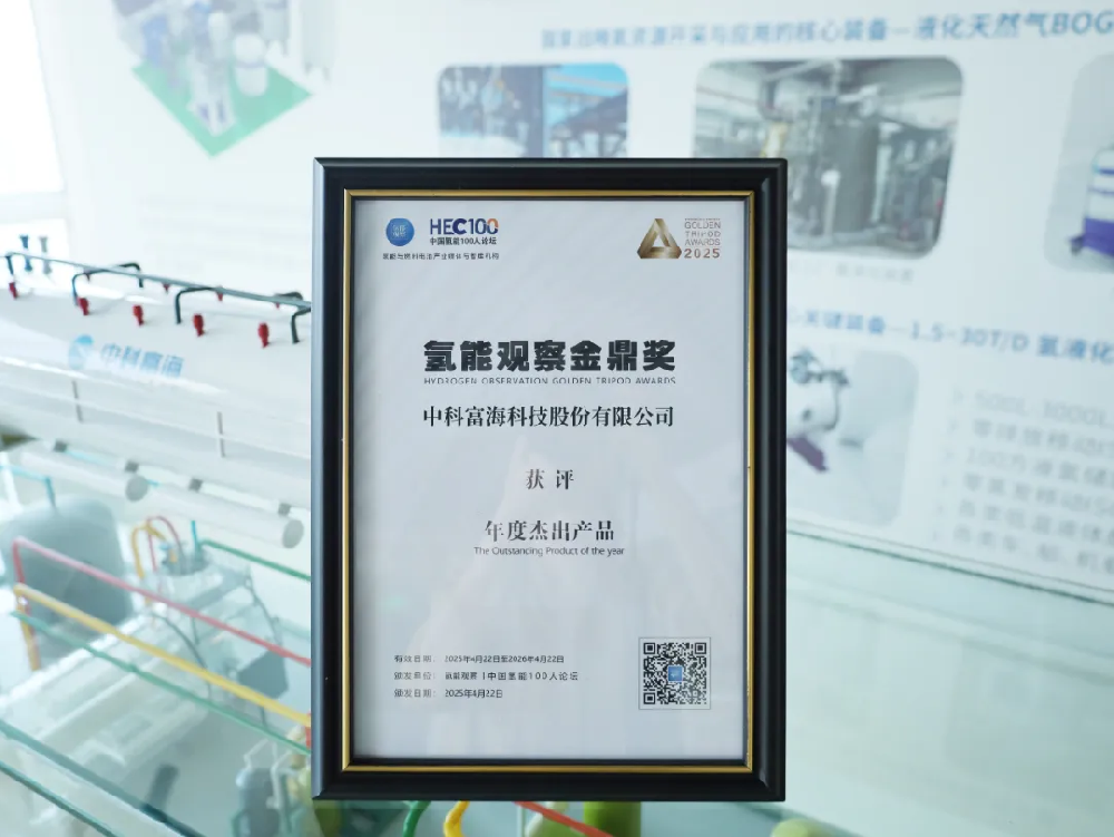 4月22日,CHEC2025第五屆世紀氫能與燃料電池大會在上海圓滿結(jié)束。會議以“聚焦氫未來,助力碳中和”為主題,旨在打通氫能產(chǎn)業(yè)各環(huán)節(jié),推動產(chǎn)業(yè)鏈發(fā)展。會議現(xiàn)場揭曉2025氫能觀察“金鼎獎”名單,中科富海憑借在氫能領(lǐng)域的產(chǎn)品創(chuàng)新研發(fā)和產(chǎn)品應(yīng)用示范等方面的實踐成果,榮獲“金鼎獎·年度杰出產(chǎn)品”獎。氫能產(chǎn)業(yè)“金鼎獎”是...